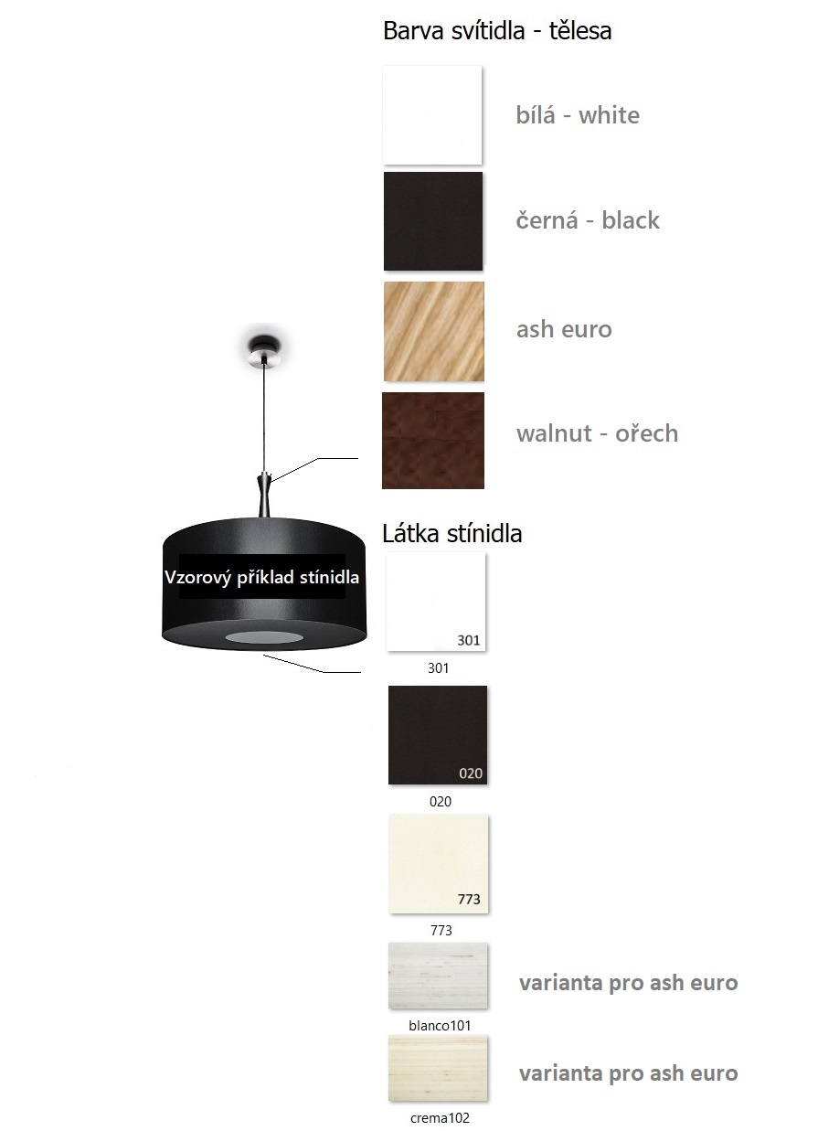 | LÁTKA STÍNIDLA: | LAMPSHADE FABRIC: | 101|301|020|Crema 102|Blanco 101 |